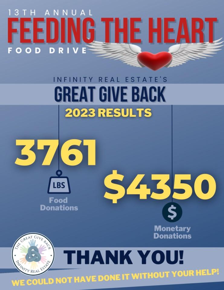 The mission of the Great Give Back is to make a difference in our local communities, not only by providing support ourselves, but by spreading the joy of giving to our entire extended Infinity family of clients, vendors, and friends and inviting them to participate.
